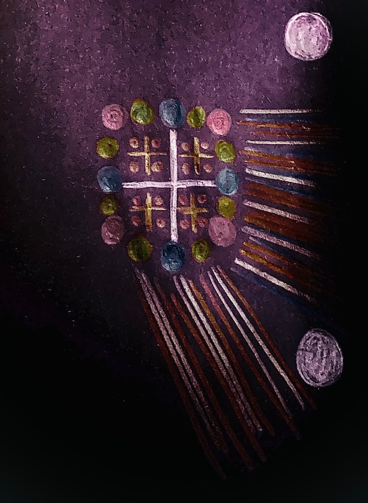 Christ’s body is a tent of a multitude of angels. Each organ is a portal to a world of peace. Muhammad is a desert oasis at night filled with stars, his family and followers create a circle in the night, I enter the circle and they whisper in my ear, “the merciful, mercy, throne of mercy, throne of the merciful.” I whisper it in the next ones ear. I realize they are angels. The presence of the prophet is circulating in the circle through the word. He is the word and command. He puts his hand on my back to remove my satanic stronghold, my anger, my pact with darkness.